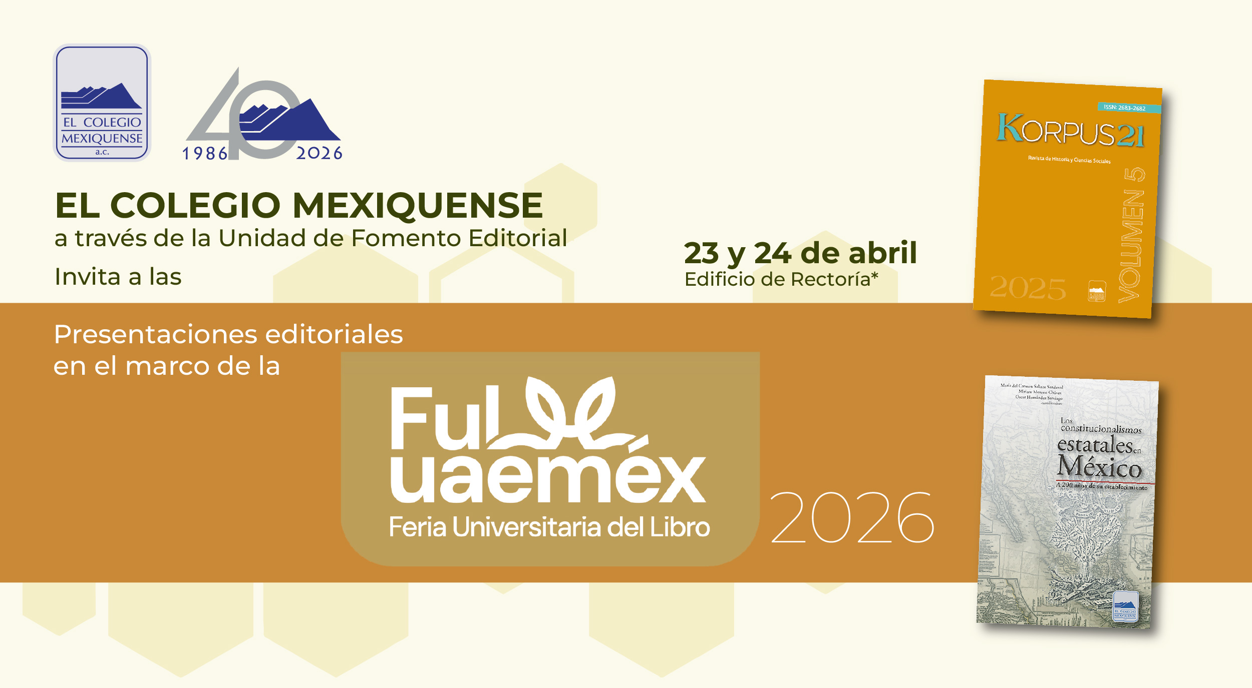 El Colegio Mexiquense participará en la Feria Internacional del Libro de Guadalajara, el más importante encuentro editorial de Hispanoamérica, con presentaciones y conversatorios dedicados a la oferta que la institución hace a los lectores y a la divulgación del conocimiento, desde el estand J15.